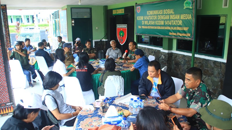 TORAJA UTARA, – || Jurnaltivi.com || Menjalin sinergitas untuk menjaga keutuhan dan kemajuan bangsa dalam bingkai NKRI, Kodim 1414/Tator menggelar Komunikasi Sosial bersama para insan media dari Kabupaten Toraja Utara dan Tana Toraja, Jumat (26/8/2022).