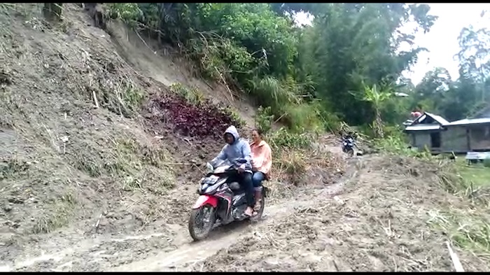 Tingginya intensitas hujan yang disertai angin kencang di wilayah tersebut, membuat pohon yang berada diperbukitan tumbang, sehingga tanah ditebing pinggir jalan penghubung antara Kecamatan Awan Rantekarua dengan Rindingallo juga ikut longsor, akibatnya jalan utama warga tertutup.