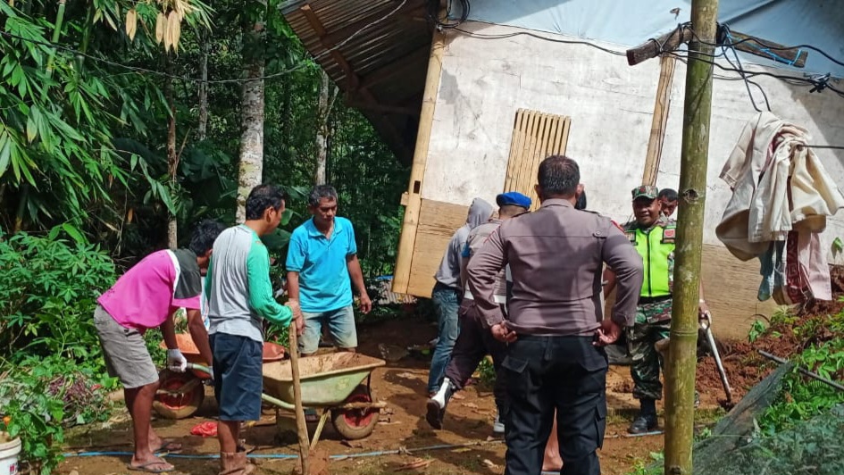 “Tidak ada peralatan yang memadai, namun jiwa gotong royong warga dan personel dibantu babinsa, material longsor yang menimpa bagian belakang rumah Santi Sapan, akhirnya bisa kami bersihkan, Ungkap IPTU Supriadi, Kapolsek Sopai.