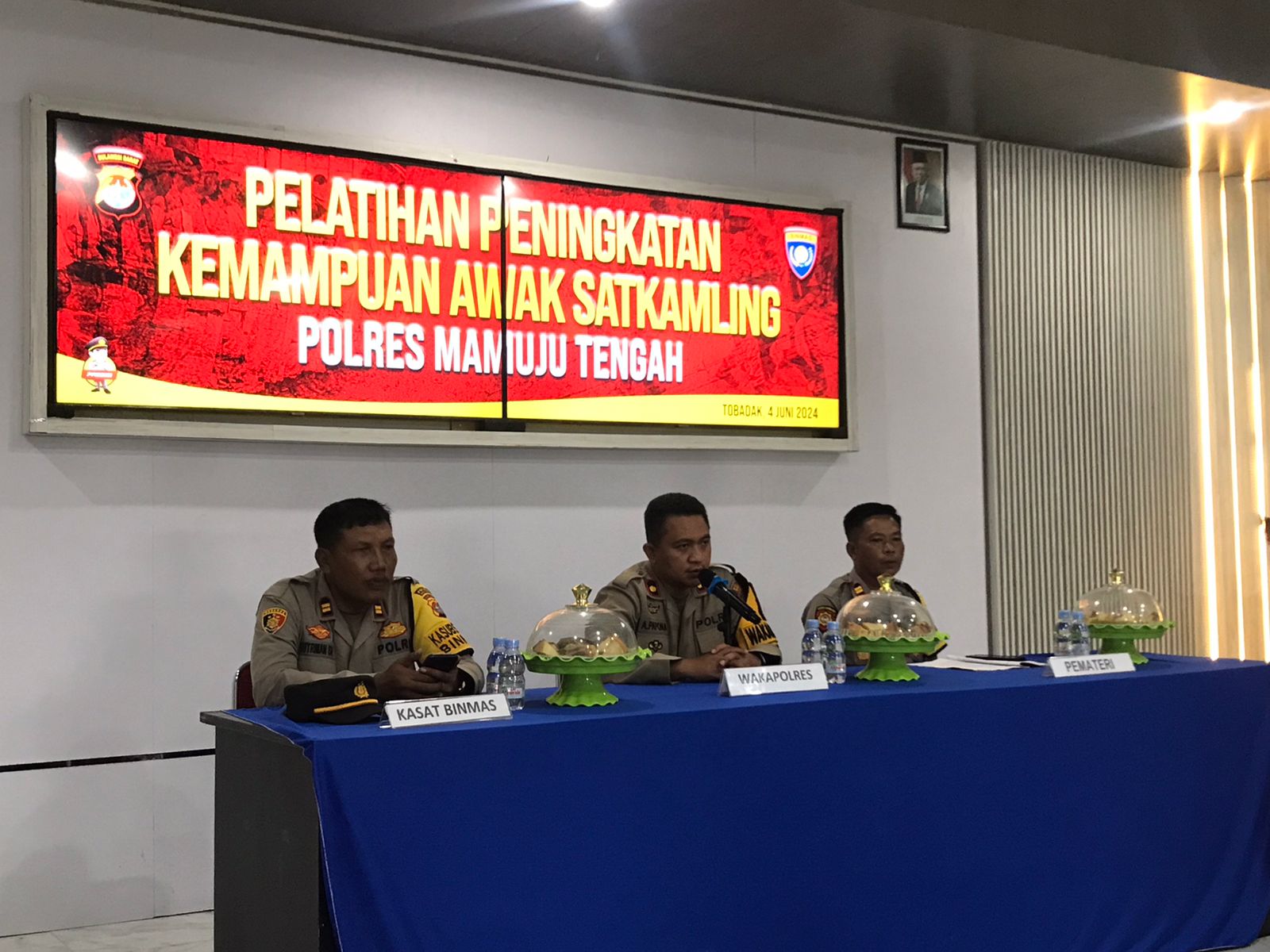 Mateng-Jurnaltivi.com– Dalam rangka meningkatkan kualitas dan efektivitas kinerja Satuan Perlindungan Masyarakat (Satkamling), Kepolisian Resor Mamuju Tengah (Mateng) menggelar Pelatihan Peningkatan Kemampuan Awak Satuan Satkamling di Aula Wichaksana Lagawa Polres Mamuju Tengah (Mateng), Sulawesi Barat (Sulbar) Selasa (4/6’2024).