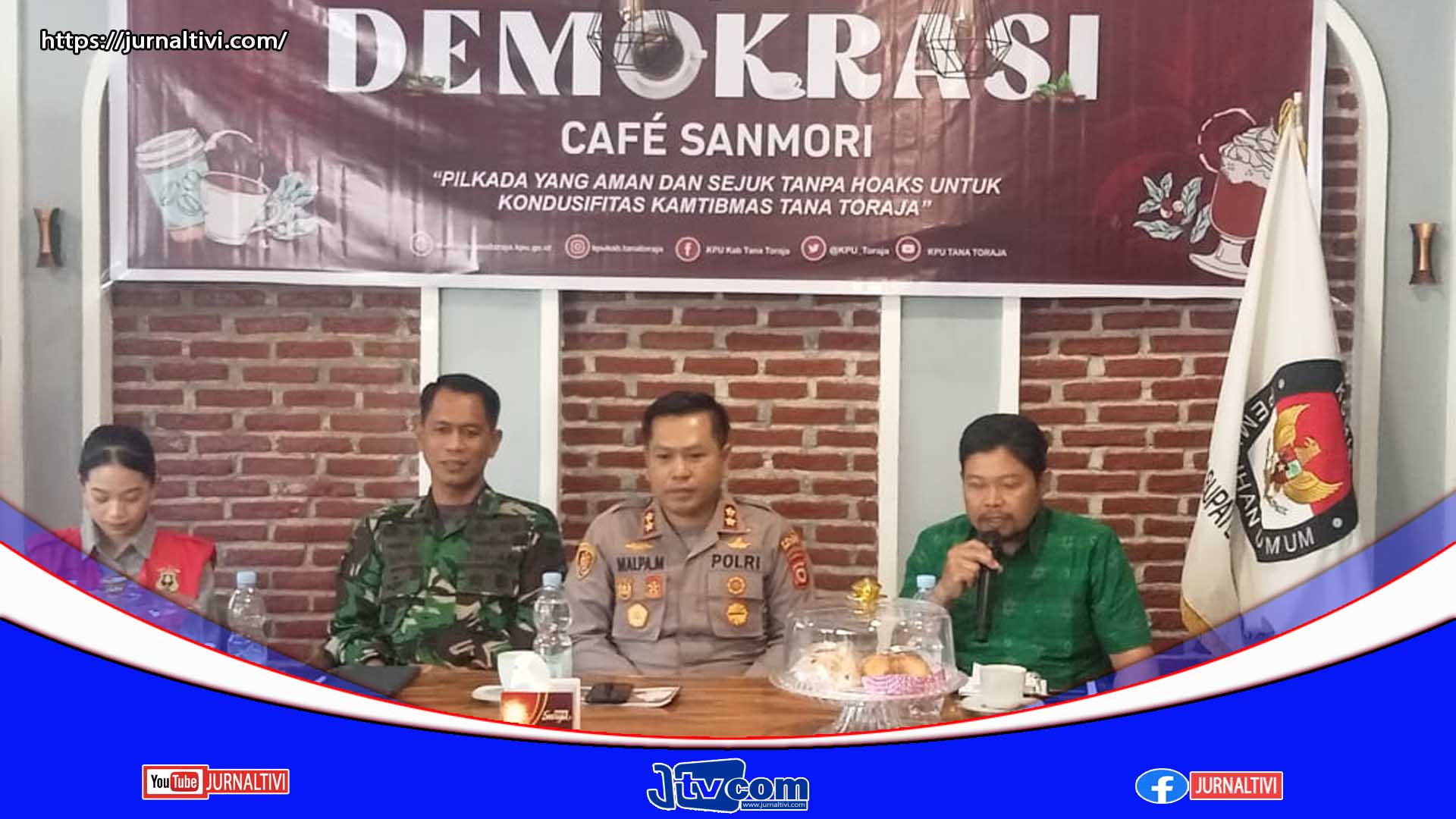 Tana Toraja, Jurnaltivi.com – Sukseskan pelaksanaan Pilkada serentak yang akan dilaksanakan di tahun 2024, Komisi Pemilihan Umum (KPU) Kabupaten Tana Toraja, Provinsi Sulawesi Selatan, gelar Cafe Demokrasi dengan mengusung topik ”Pilkada Yang Aman dan Sejuk Tanpa Hoaks Untuk Kondusitifitas Kamtibmas Tana Toraja”.