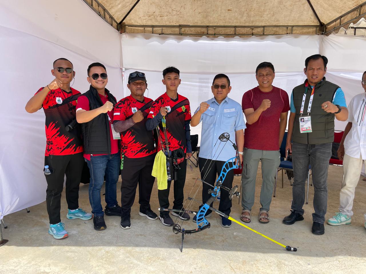 Dalam kunjungannya ABM, yang didampingi pengurus Koni Sulbar, Gunawan. Untuk mestikan kesiapan atlet, ABM sempat mencoba busur panah yang digunakan atlet panahan untuk bertarung meraih medali dalam Cabor panahan.