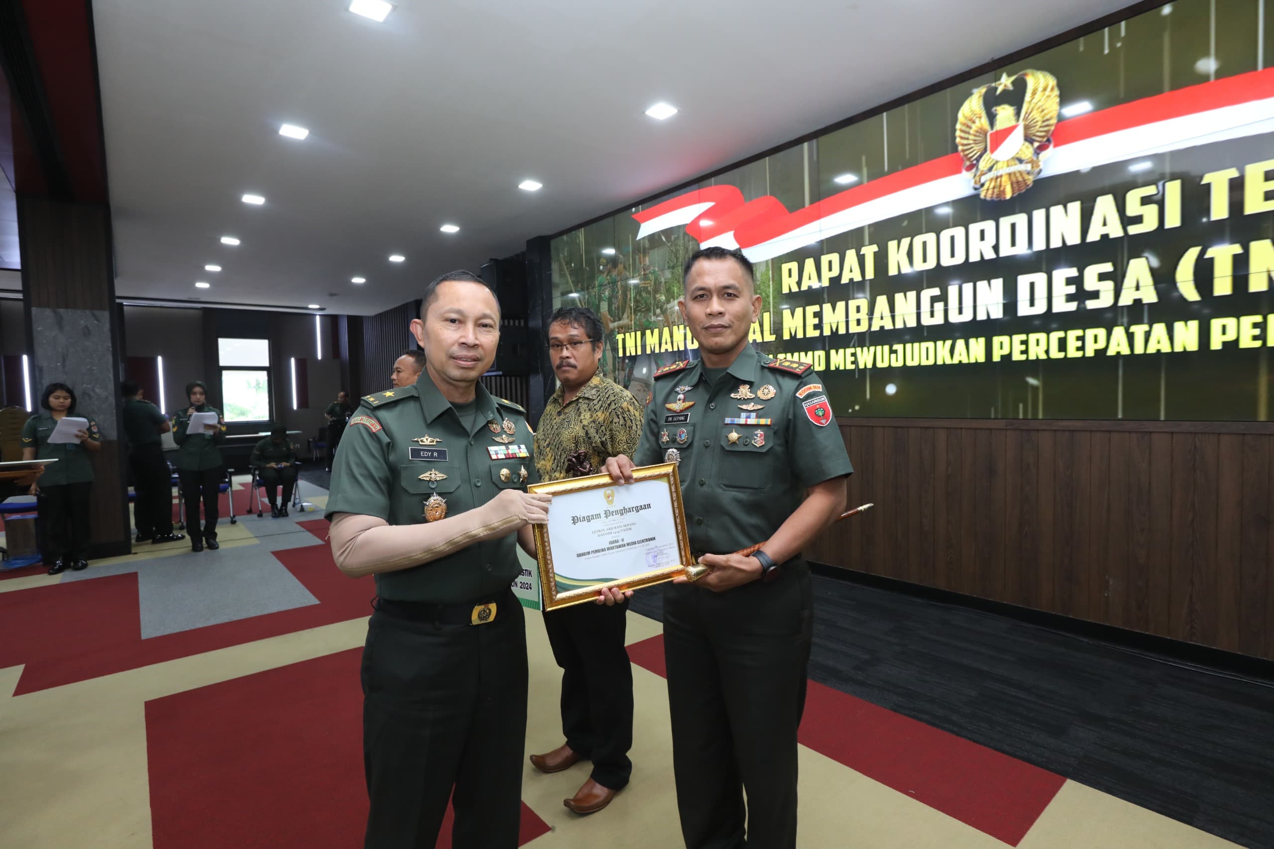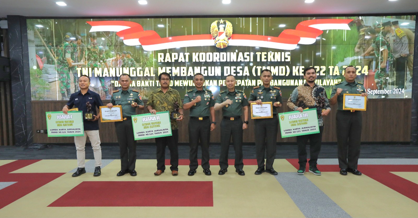 Jakarta, Jurnaltivi.com – Bertempat di Aula Gedung A.H. Nasution Lantai II Mabesad Jakarta Pusat, berlangsung kegiatan Rakornis TMMD ke-122 Tahun 2024. Acara ini juga menjadi ajang pengumuman pemenang Lomba Karya Jurnalistik (LKJ) dan evaluasi kegiatan TMMD ke-121 Tahun 2024. Kamis, (19/09/2024).
