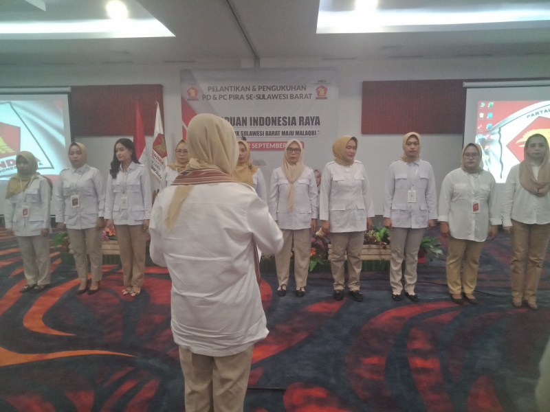 Mamuju-Jurnaltivi.com-Pengurus Daerah (PD) Perempuan Indonesia Raya (Pira), Sulawesi Barat (Sulbar) dikukuhkan oleh Wakil Ketua (Waketum) Pira, Edriana Nurdin, di Mamuju, Minggu (22/9/2024). Ketua PD Pira Sulbar, Fadiah Azis, Sekretaris Rahmawati Sulaeman dan Bendahara, Hamsinah.