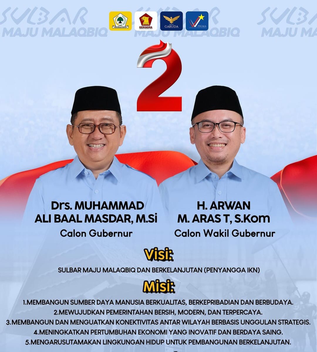 Mamuju-Jurnltivi.com- Juru bicara pasangan Calun Gubernur (Cagub) Sulawesi Barat dan Calon Wakil Gubernur (Cawagub) Sulbar, nomor urut 2 Ali Baal Masdar (ABM) dan Arwan Aras, Andi Muh. Riski AD kepada wartawan menyampaikan bahwa pasangan yang diusung oleh Partai Geeindra dan Partai Golkar adalah calon yang paling layak untuk kembali memimpin Sulbar untuk 5 tahun kedepan. Keduanya layak pimpin Sulbar karena rekam jejk pasangan ini baik tidak ada cela.