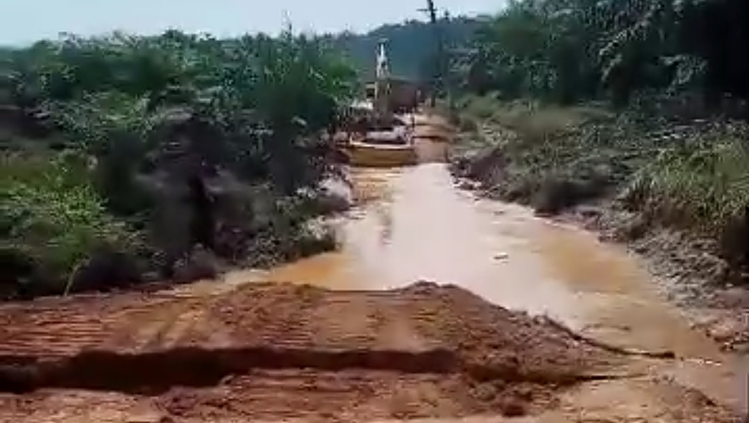 Mamuju-Jurnaltivi.com-Alat berat yang mengerjakan pekerjaan jalanan desa di Desa Salukada, Kecamatan Tobadak, Kabupaten Mamuju Tengah (Mateng) Sulawesi Barat (Sulbar) tertimbun tanah likuifaksi, Sabtu (2/11/2024). Oprator alat berat berhasil menyelamatkan diri.