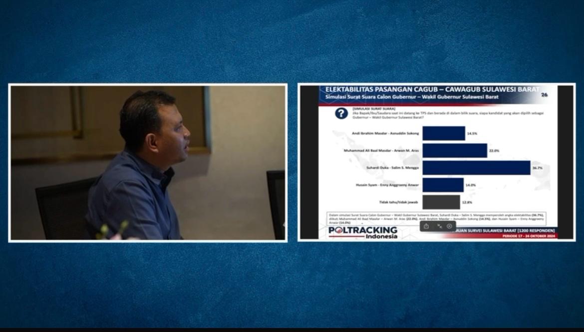 Lebih lanjut, kejanggalan dalam publikasi hasil survei Pilkada Sulbar yang dilakukan oleh Poltracking Indonesia. Hasil survei Pilkada Sulawesi Barat tidak ditemukan di website resmi Poltracking, namun beredar luas dalam bentuk video presentasi.