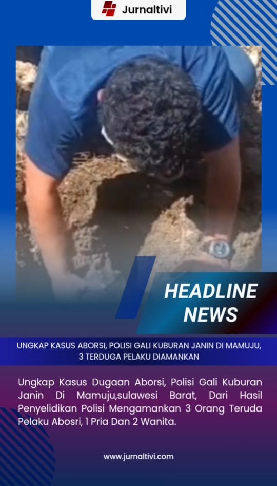 Mamuju, Jurnaltivi.com – Ungkap kasus dugaan aborsi, polisi gali kuburan janin di Mamuju, Sulawesi Barat. Dari hasil penyelidikan polisi mengamankan 3 orang terduga pelaku abosri, 1 pria dan 2 wanita.(8/JTV)