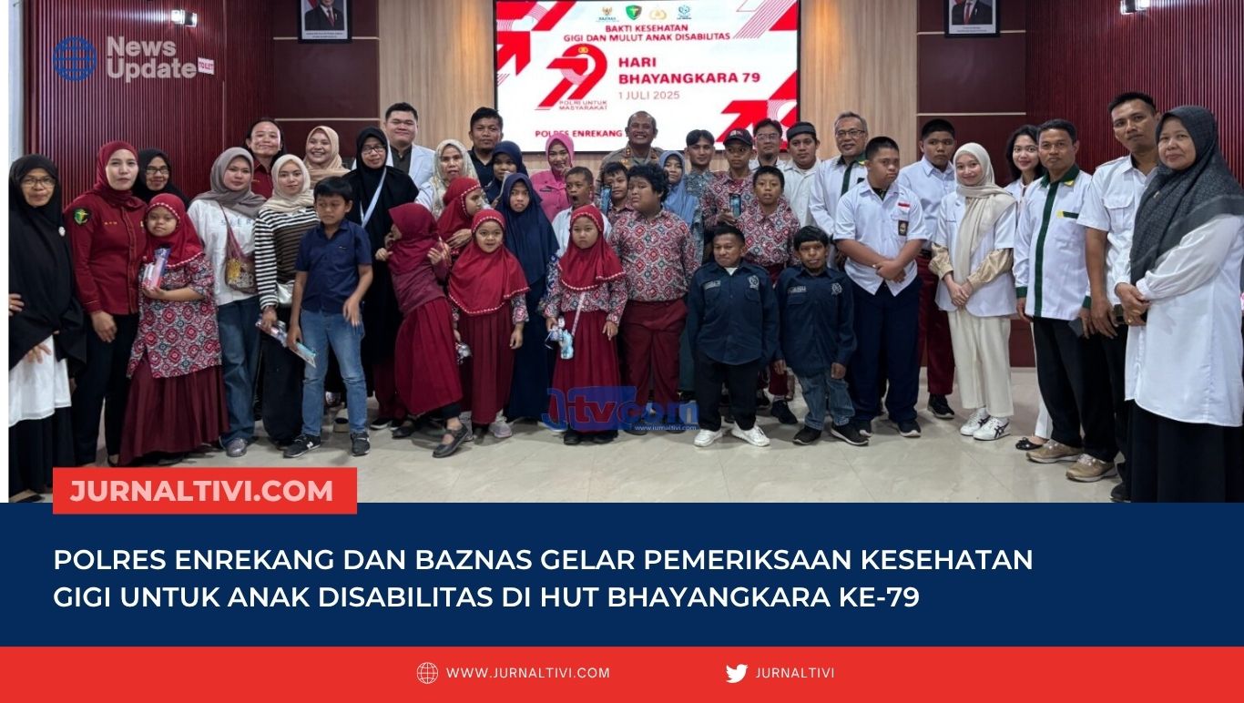 Enrekang, Jurnaltivi.com – Dalam rangka memperingati Hari Ulang Tahun (HUT) Bhayangkara ke-79 tahun 2025, Polres Enrekang bekerja sama dengan Badan Amil Zakat Nasional (Baznas) Kabupaten Enrekang menggelar kegiatan bakti sosial berupa pemeriksaan dan edukasi kesehatan gigi dan mulut bagi anak-anak disabilitas.