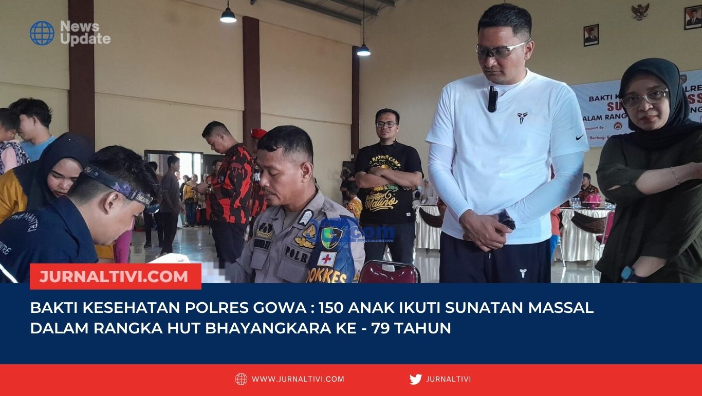 Gowa, Jurnaltivi.com – 150 Anak ikuti Sunatan Massal di Bakti Kesehatan Polres Gowa dalam rangka HUT Bhayangara Ke – 79 Tahun, di Aula Rewako Polres Gowa, Jalan Syamsuddin Tunru, Kabupaten Gowa, Sulsel, Minggu 22 Juni 2025 pagi tadi.