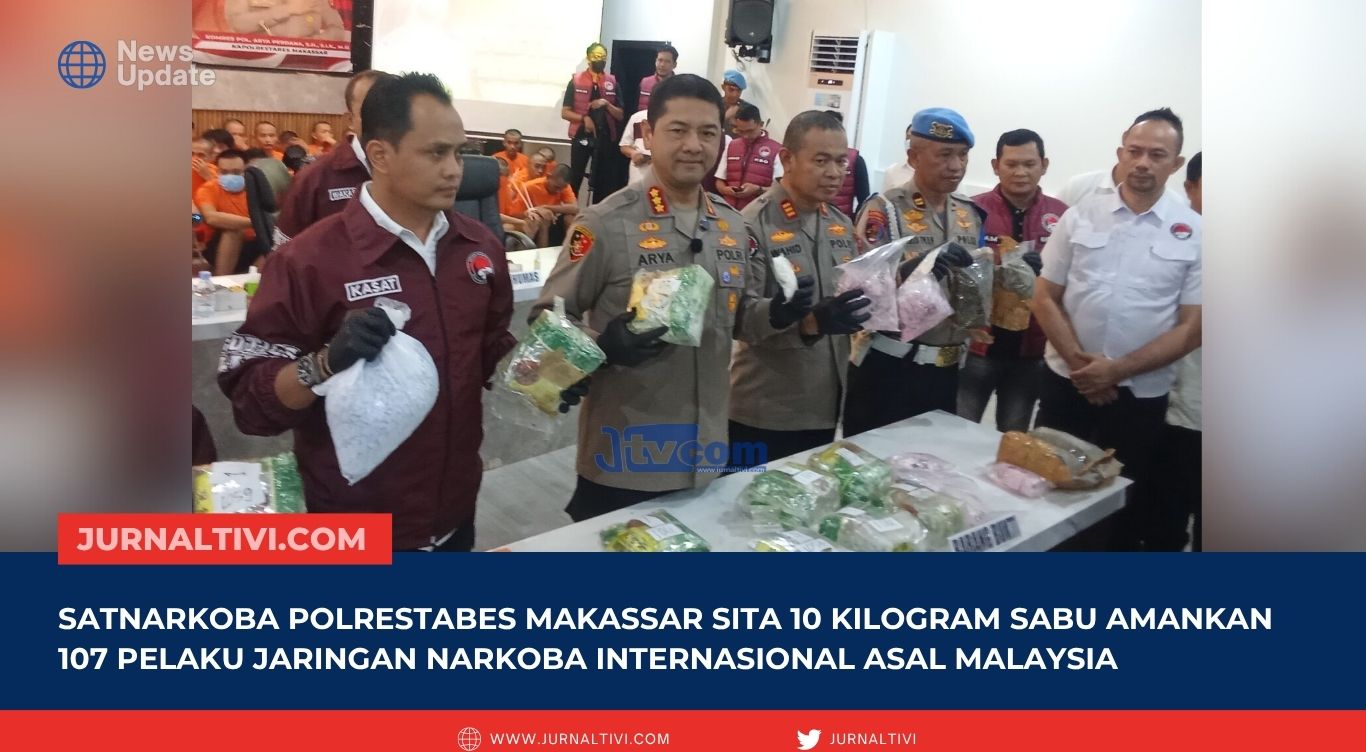 Satnarkoba Polrestabes Makassar Sita 10 Kilogram Sabu, Amankan 107 Pelaku Jaringan Narkoba Internasional Asal Malaysia
