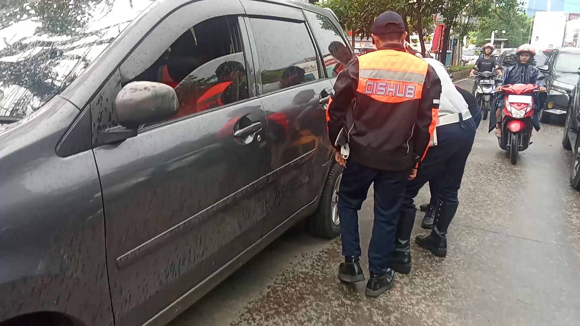 Beberapa kendaraan roda empat yang parkir liar di badan jalan langsung di tindaki dengan di gembok oleh petugas dishub.