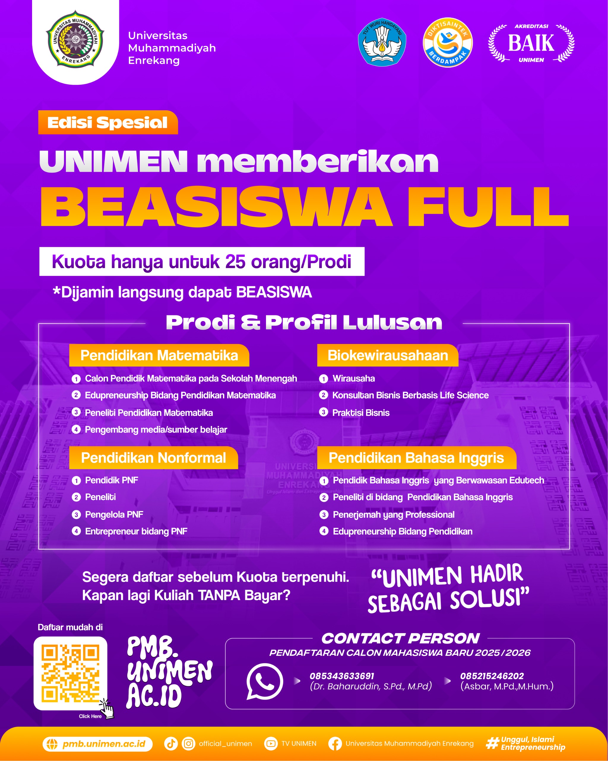 Enrekang, Jurnaltivi.com β Universitas Muhammadiyah Enrekang (UNIMEN) kembali melakukan terobosan sebagai komitmen untuk memajukan pendidikan khususnya di Bumi Massenrempulu.