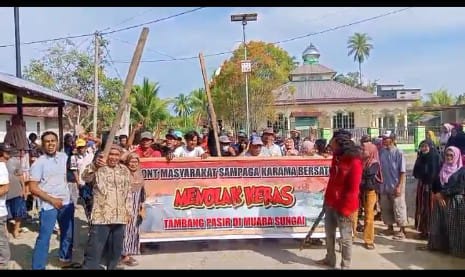 Mamuju Tengah, Jurnaltivi.com-Ratusan warga tolak  rencana aktivitas tambang pasir di Muara Sungai Karama, Desa Pangale, Kabupaten Mamuju Tengah (Mateng), Sabtu (12/7/2025) geruduk kantor desa warga minta agar Kepala Desa (Kades) ikut bersama barisan masyara