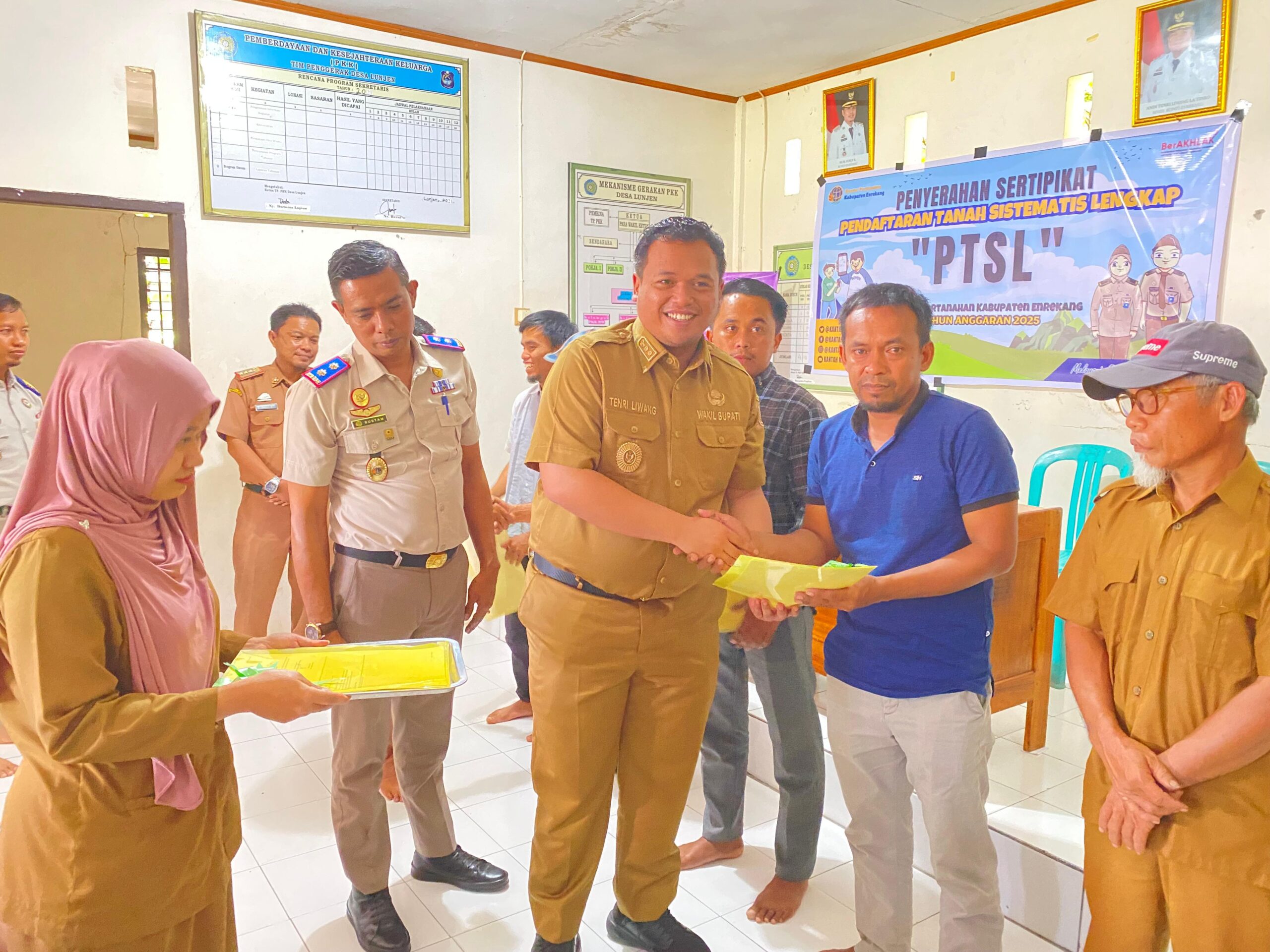 Enrekang, Jurnaltivi.com – Wakil Bupati Enrekang, Andi Tenri Liwang La Tinro menyerahkan sertifikat hasil Program Pendaftaran Tanah Sistematis Lengkap (PTSL) di Desa Tirowali, Kecamatan Baraka dan Desa Lunjen, Kecamatan Buntu Batu, Senin, 21 Juli 2025.