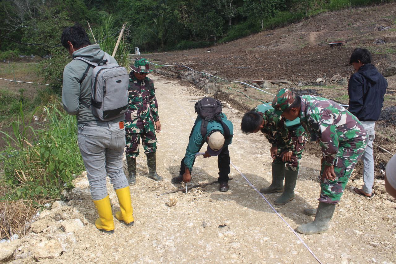 Petugas dari Dinas PU, Muis di dampingi Dan SSK TMMD  ke 125 Letda Inf Amrullah turun langsung ke lapangan untuk melakukan pengukuran panjang, lebar dan ketebalan pengerasan jalan, memastikan seluruh spesifikasi teknis telah terpenuhi sesuai rencana awal.