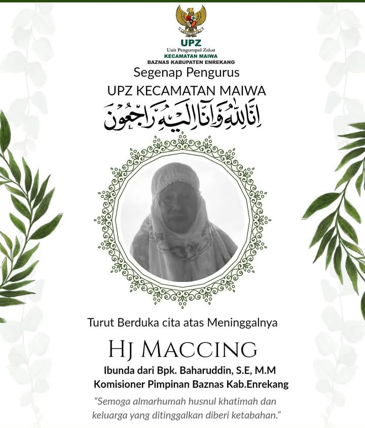 “Kami turut berduka cita atas wafatnya ibunda dari salah satu pimpinan kami. Semoga almarhumah mendapat tempat terbaik di sisi Allah SWT dan keluarga yang ditinggalkan diberi ketabahan,” ujar perwakilan Baznas Enrekang.