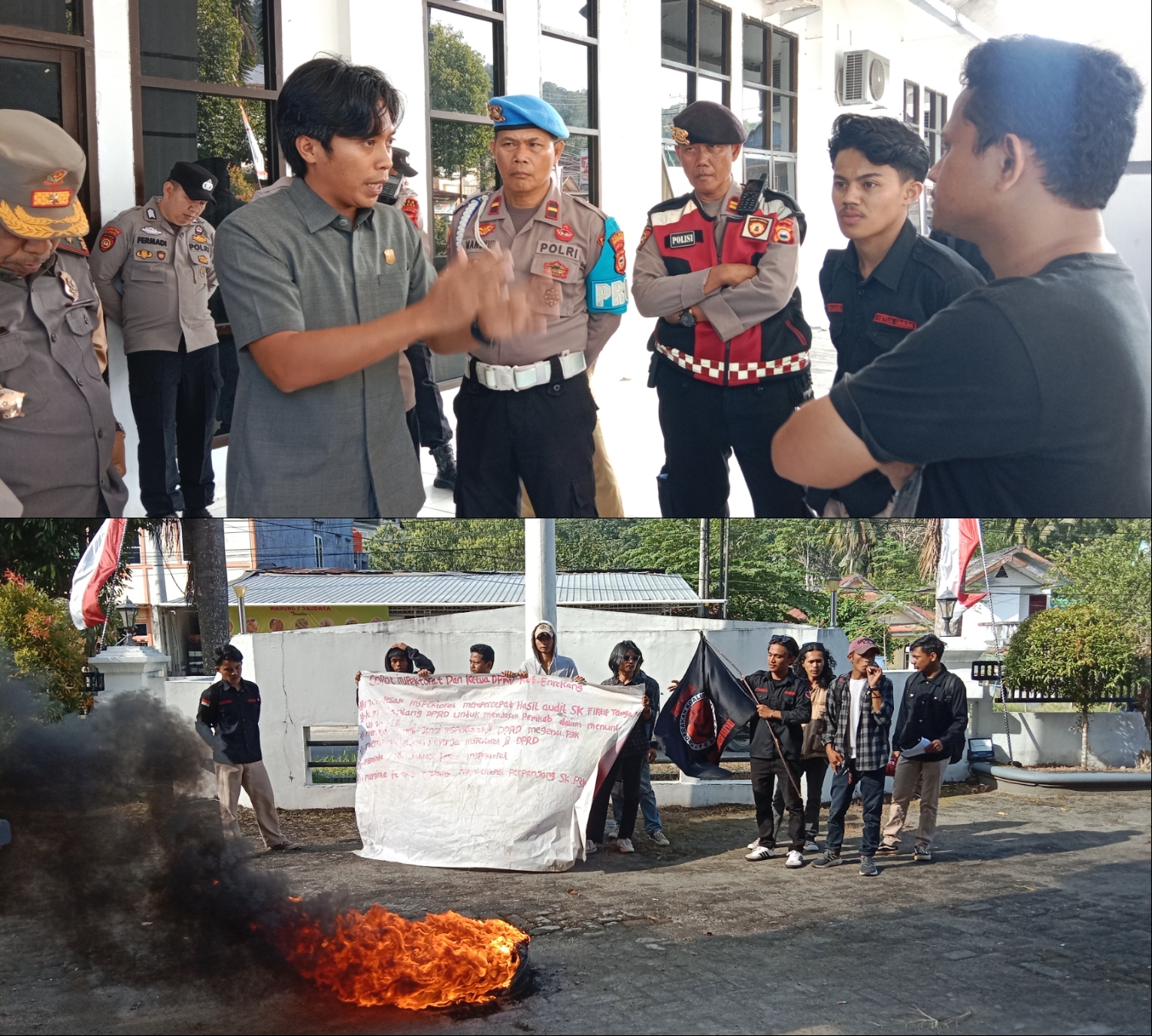 Saat aksi berlangsung dihalaman kantor DPRD, massa diterima langsung oleh Ketua DPRD Enrekang, Ikrar Erang Batu, di bawah penjagaan ketat aparat dari Polres Enrekang. Secara bergiliran, para peserta aksi menyampaikan orasi menyuarakan kekecewaan terhadap belum adanya penyelesaian nasib PPPK angkatan 2023.