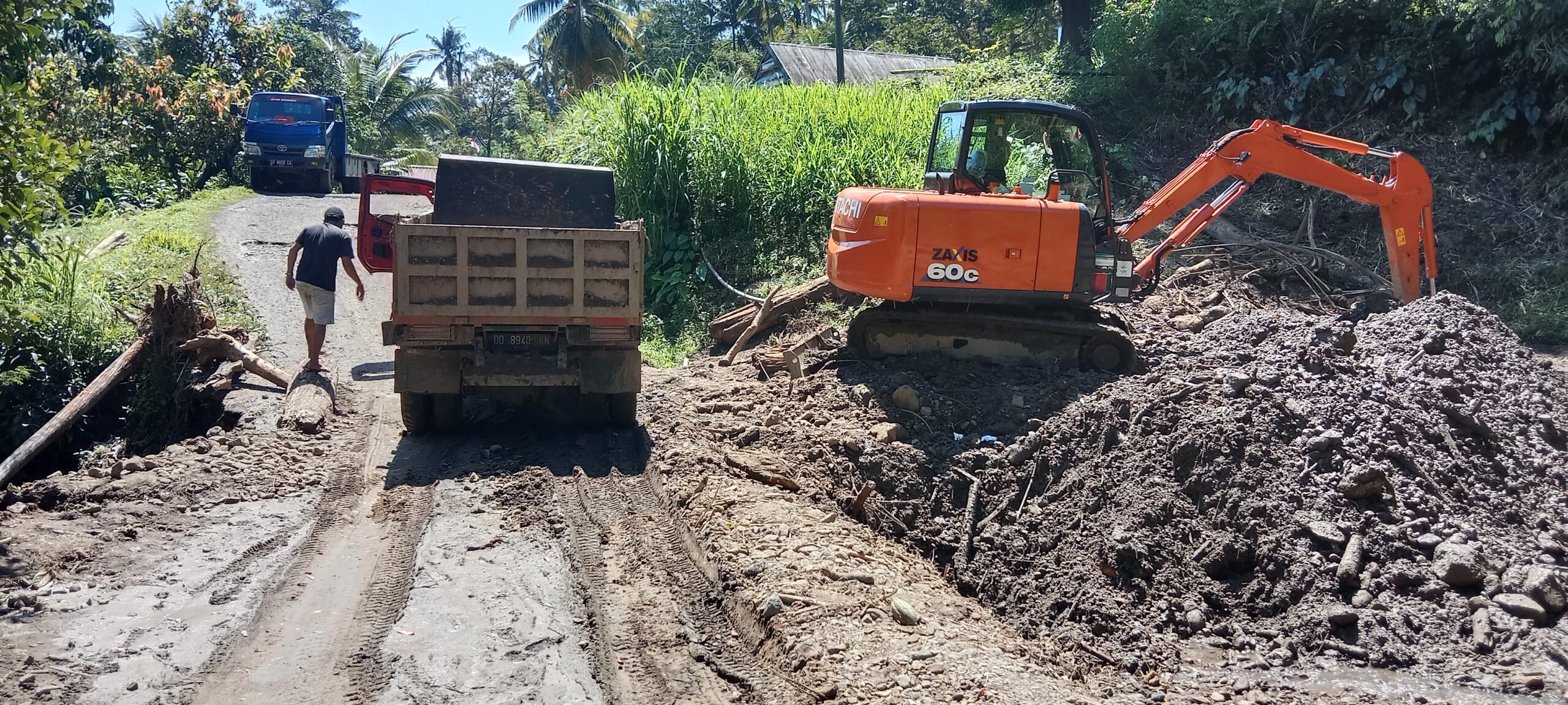 Namun, Rustan menegaskan tidak bisa menggunakan Anggaran Dana Desa (ADD) karena dana tersebut sudah memiliki peruntukan yang jelas. “ADD kami hanya sekitar 600 juta lebih, itu pun 20 persen untuk ketahanan pangan, ditambah untuk stunting, BLT, kebutuhan masyarakat, dan lainnya. Jadi terpaksa saya yang talangi biaya sewa ekskavator untuk mengangkut material yang menutupi jalan,” jelasnya.
