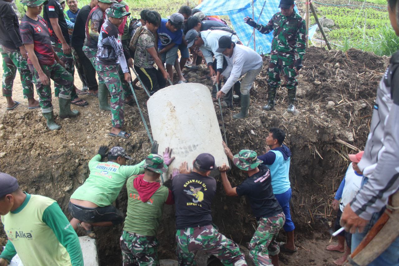Pemasangan gorong-gorong melibatkan kerja sama erat antara TNI dan masyarakat setempat. Warga ikut membantu mengangkut material dan menata lokasi, sehingga proses pengerjaan bisa lebih cepat.