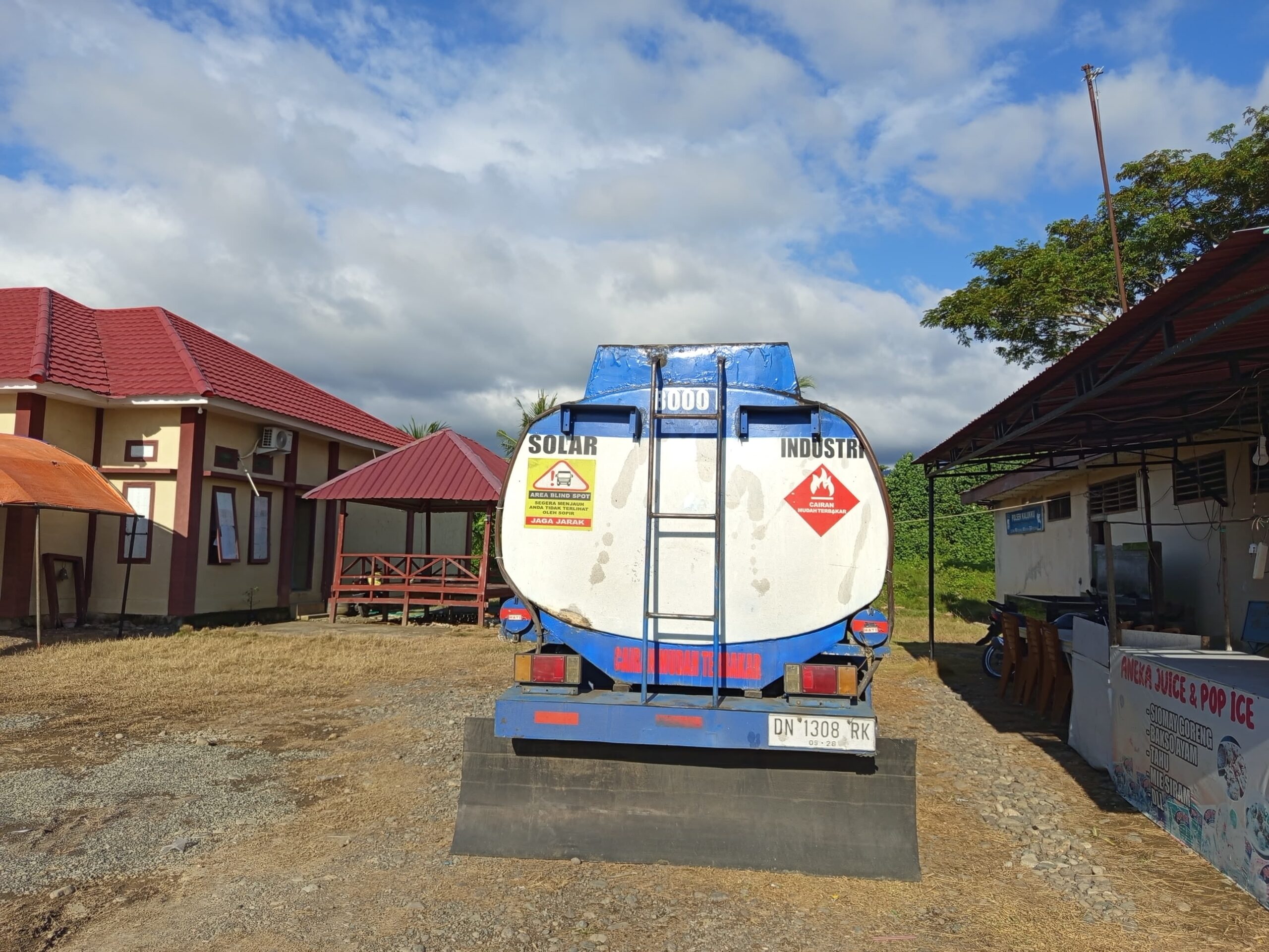 Mobil tangki yang diamankan tersebut berwarna biru putih merek hino dengan nomor polisi DN 1308 RK. Mobil tangki tersebut saat ini masih diamankan di Polsek Kalukku.