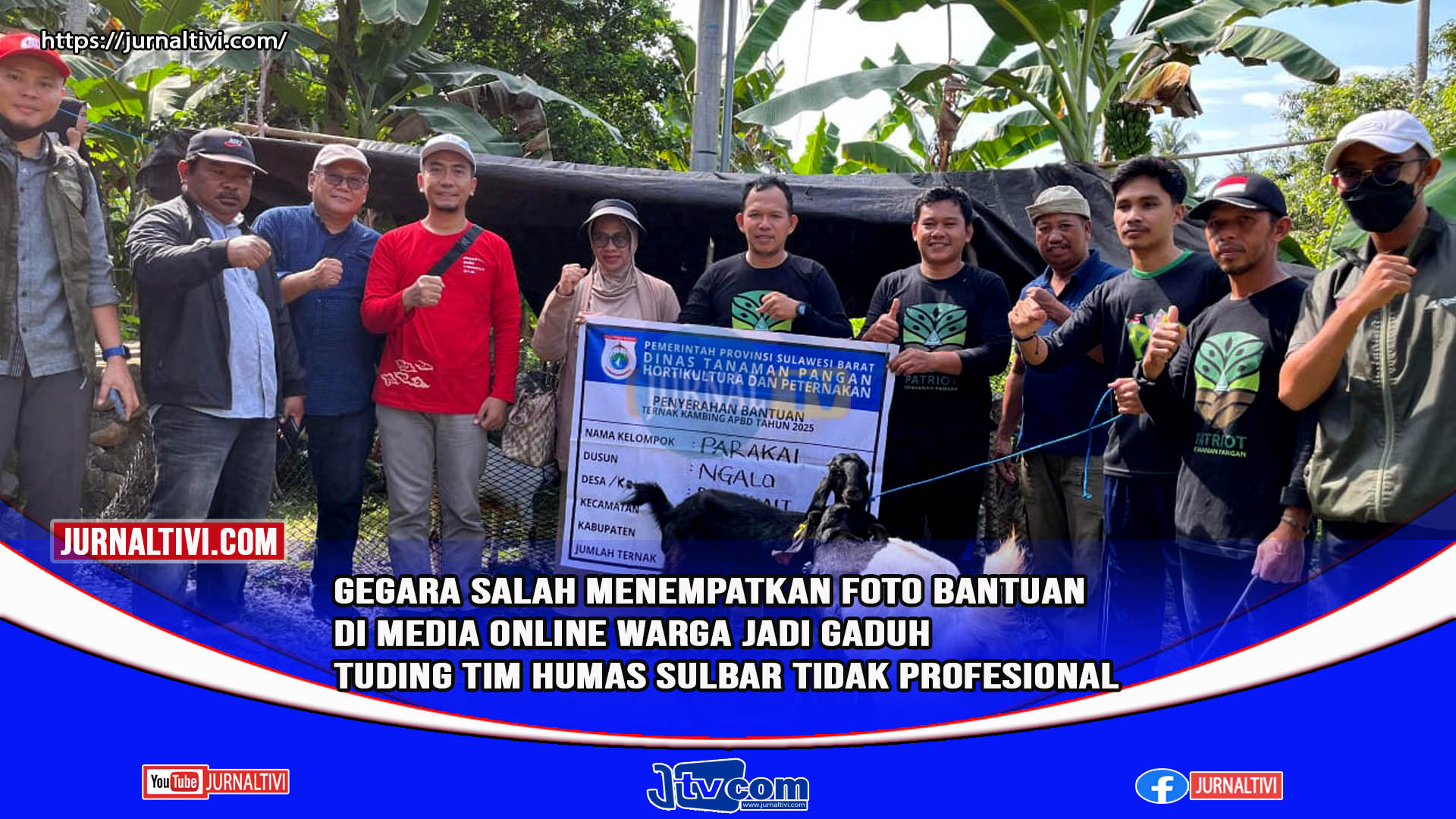 Mamuju, Jurnaltivi.com-Gegara salah menempatkan foto untuk bantuan bibit Kakao diganti dengan bantuan pengadaan kambing, yang disalurkan Pemprov Sulawesi Barat (Sulbar) di sejumlah kecamatan yang ada di Kabupaten Mamuju, dan sempat dimuat di media online yang ada di Sulbar mengakibatkan kegaduhan di masyarakat terutama di kelompok kelompok tani. akibat adanya kegaduhan tersebut warga tuding tim Humas Pemprov Sulbar tidak profesional.