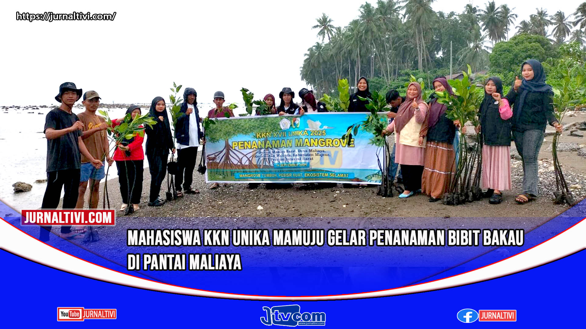 Majene, Jurnaltivi.com-Mahasiswa KKN Angkatan XVII Unika Mamuju Bersama dengan Pemerintah dan warga desa Maliaya, Kecamatan Malunda, Kabupaten Majene, Sulbar, melaksanakan Penanaman Bibit Bakau di Pantai desa Maliaya. Minggu (14/09/2025)