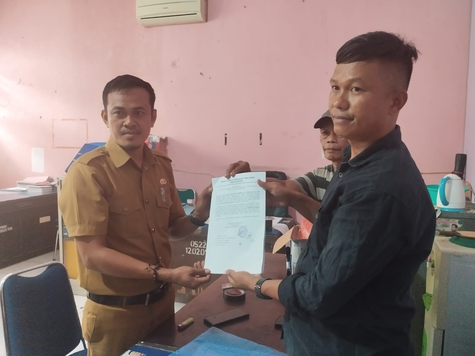 Eros menambahkan, untuk membuktikan warga Desa Banuada tidak ada yang menolak pengukuhan Paipinan Tikirik, dia sebagai tokoh pemuda membawa surat pernyataan warga Desa Banuada bahwa mereka mendesak agar mantan Kades mereka dikukuhkan kembali.