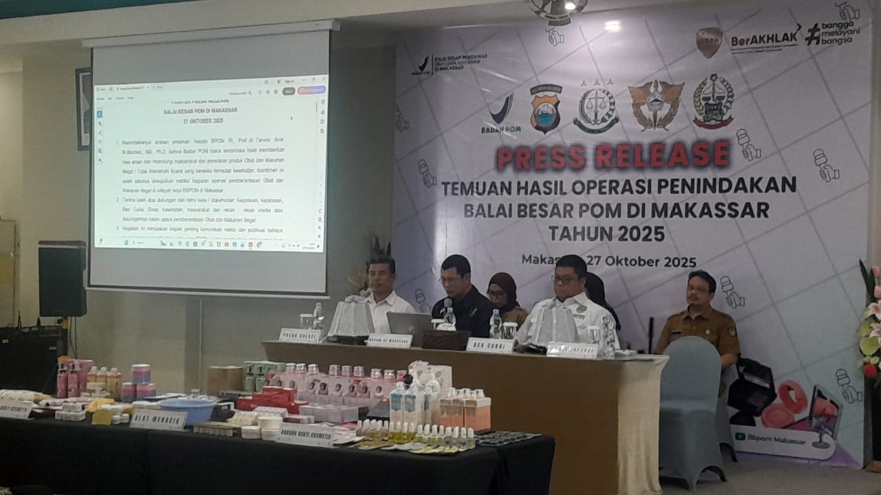 Press release sebagai salah satu upaya bersama mengeradikasi peredaran kosmetik ilegal yang beresiko terhadap kesehatan di wilayah Makassar dan Sulsel.