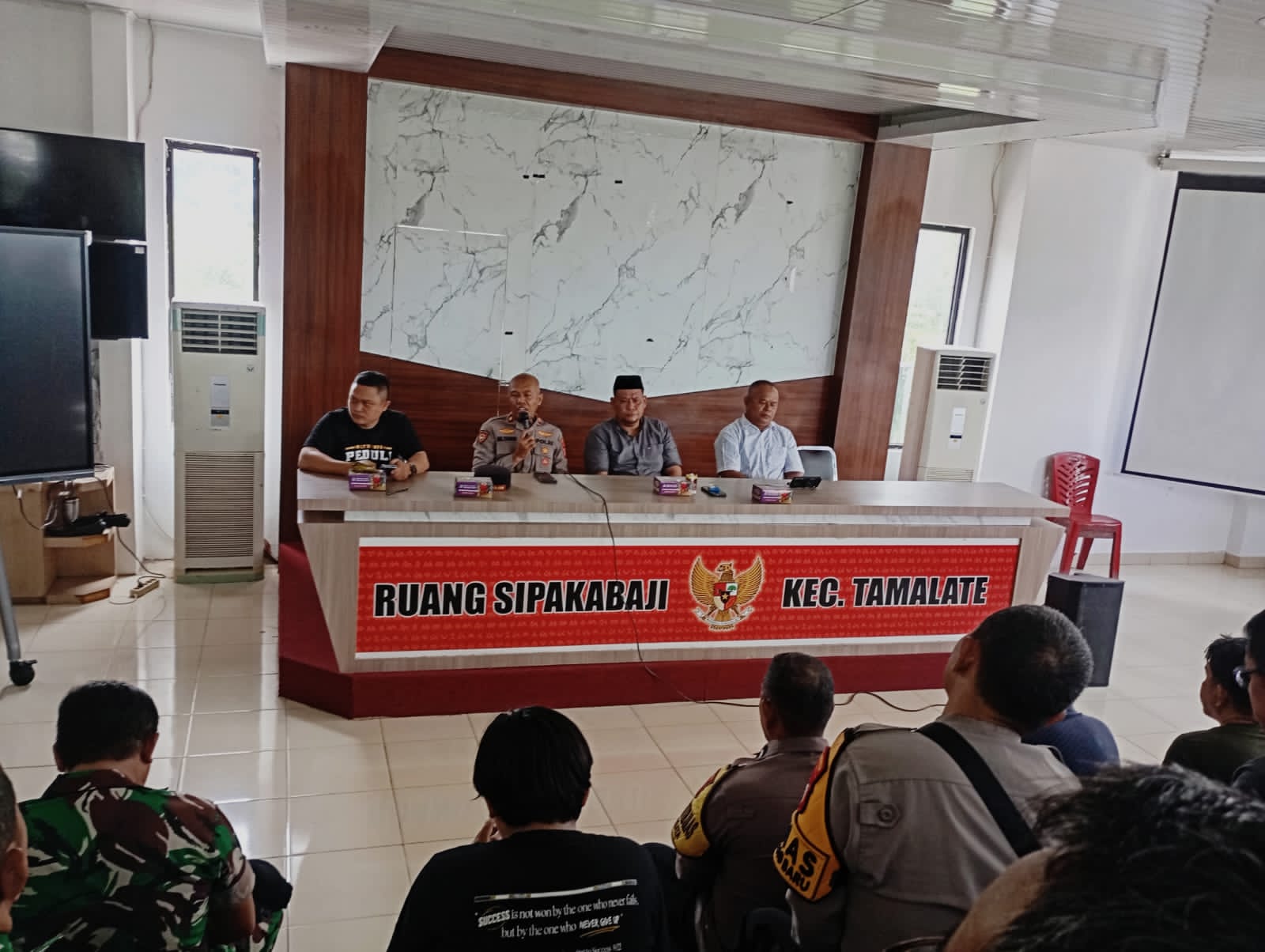 JURNALTIVI.COM, MAKASSAR – Kapolsek Tamalate Polrestabes Makassar, Kompol H. Muh. Thamrin.,S.E.,M.M hadiri rapat koordinasi Tripika dalam pelaksanaan Pemilu Raya, ketua RT dan ketua RW Se Kecamatan Tamalate, bertempat di Aula Sipekelebbi Lantai 3 Kantor Kecamatan Tamalate Jl. Danau tanjung bunga Kel. Maccini Sombala Kota Makassar, Sabtu (30/11/2025).