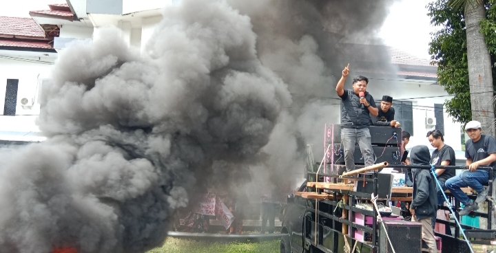 Aksi dimulai sejak pagi. Massa membawa spanduk bertuliskan “Tolak Tambang Emas” dan “Copot Bupati Enrekang”. Mereka membakar ban bekas dan menutup total Jalan Trans Sulawesi hingga menyebabkan kemacetan parah dari kedua arah.