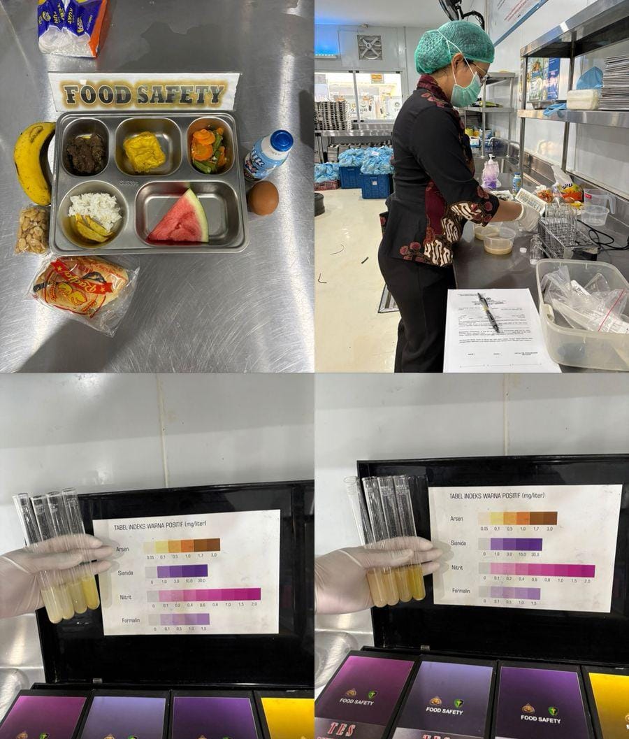Melalui pemaparan visual dan contoh hasil uji, peserta diperkenalkan langsung pada proses pemeriksaan pangan menggunakan Kit Food Safety yang dikembangkan untuk memudahkan deteksi cepat di lapangan.