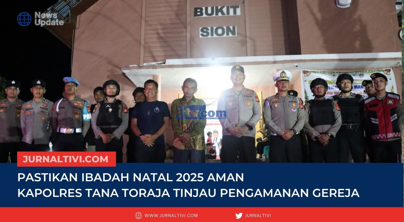 Tana Toraja, Jurnaltivi.com – Pastikan pelaksanaan Ibadah malam Natal 2025 berjalan aman dan lancar, Kapolres Tana Toraja AKBP Budi Hermawan, S.I.K., didampingi sejumlah pejabat teras dan anggota Polres melakukan pengecekan personel yang tengah melakukan pengamanan gereja di wilayah Kecamatan Makale, Kabupaten Tana Toraja, Provinsi Sulawesi Selatan, Rabu malam (24/12/25).