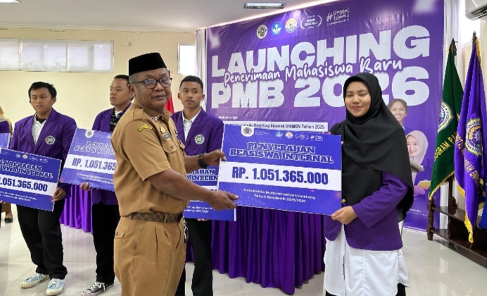 Enrekang, Jurnaltivi.com – Universitas Muhammadiyah Enrekang (UNIMEN) gelar Launching PMB Tahun 2026 di Aula Kampus I UNIMEN, Jl. Jenderal Sudirman No. 17 Enrekang yang dirangkaikan dengan Penyerahan Beasiswa Internal untuk Mahasiswa Baru Tahun 2025, Selasa (20/1/2026).