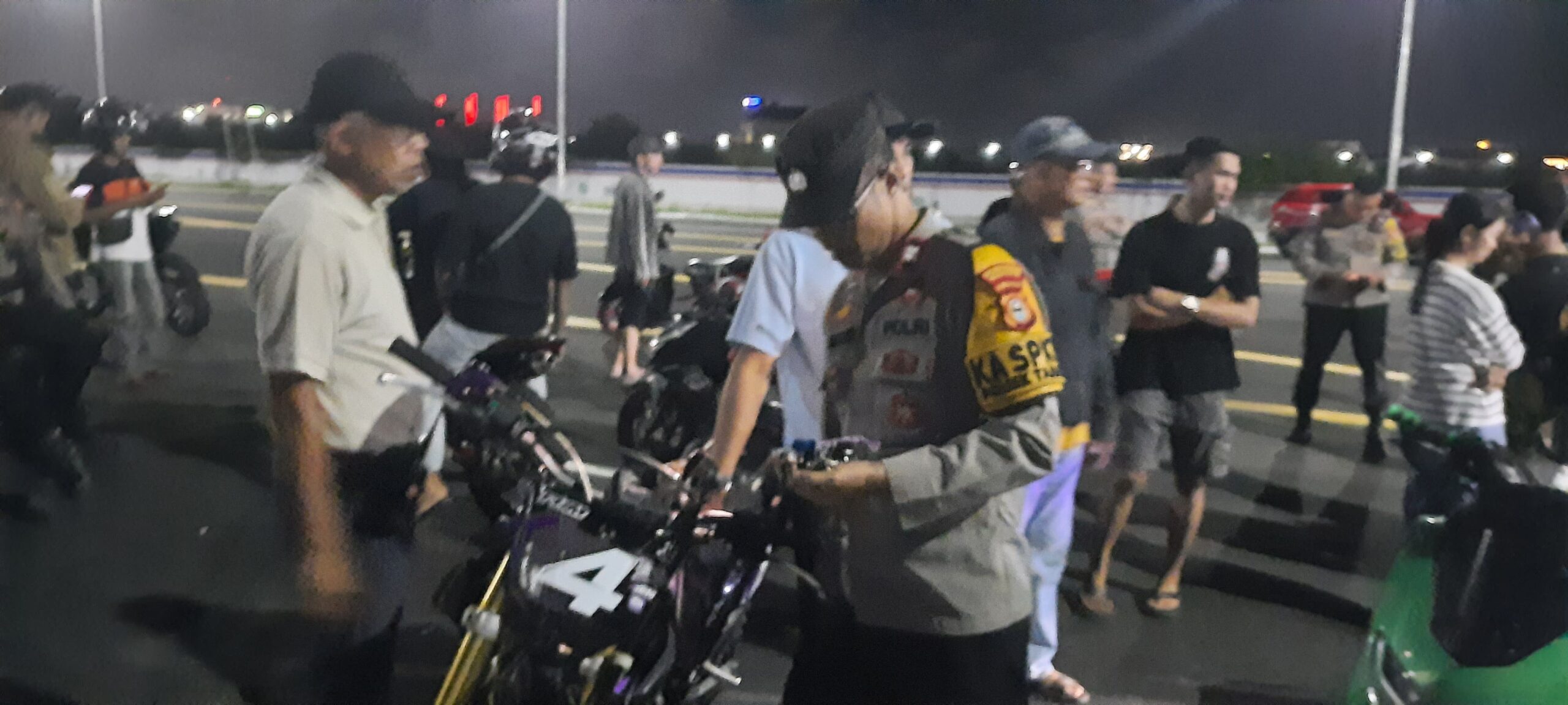 JURNALTIVI.COM, MAKASSAR – Dalam upaya menciptakan situasi yang aman dan kondusif, Polsek Tamalate Polrestabes Makassar yang dipimpin langsung oleh Kapolsek Tamalate, Kompol H. Muh. Thamrin.,S.E.,M.M, membubarkan balap liar dan penggunaan knalpot brong pada, Sabtu malam 24/01/2026 Kegiatan yang berlangsung sejak pukul 21.00 wita bertempat depan Rs kemenkes RI di kawasan CPI (Center Point of Indonesia), kelurahan Maccini Sombala, kecamatan Tamalate kota Makassar, sebagai lokasi yang sering dijadikan tempat balap liar dan berkumpulnya para remaja dengan kendaraan bermotor menggunakan Knalpot Brong.