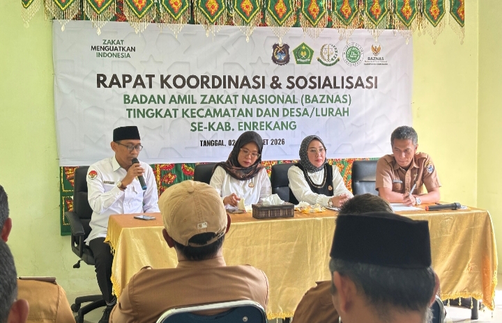 Enrekang, Jurnaltivi.com – Badan Amil Zakat Nasional (Baznas) Kabupaten Enrekang menggelar rapat koordinasi (rakor) dan sosialisasi Zakat, Infak, dan Sedekah (ZIS) tingkat kecamatan serta desa/kelurahan se-Kabupaten Enrekang. Kegiatan yang berlangsung selama tiga hari, mulai 2 hingga 4 Maret 2026 ini bertujuan memperkuat sinergi lintas lembaga serta optimalisasi pengelolaan ZIS yang lebih profesional, transparan, dan akuntabel.