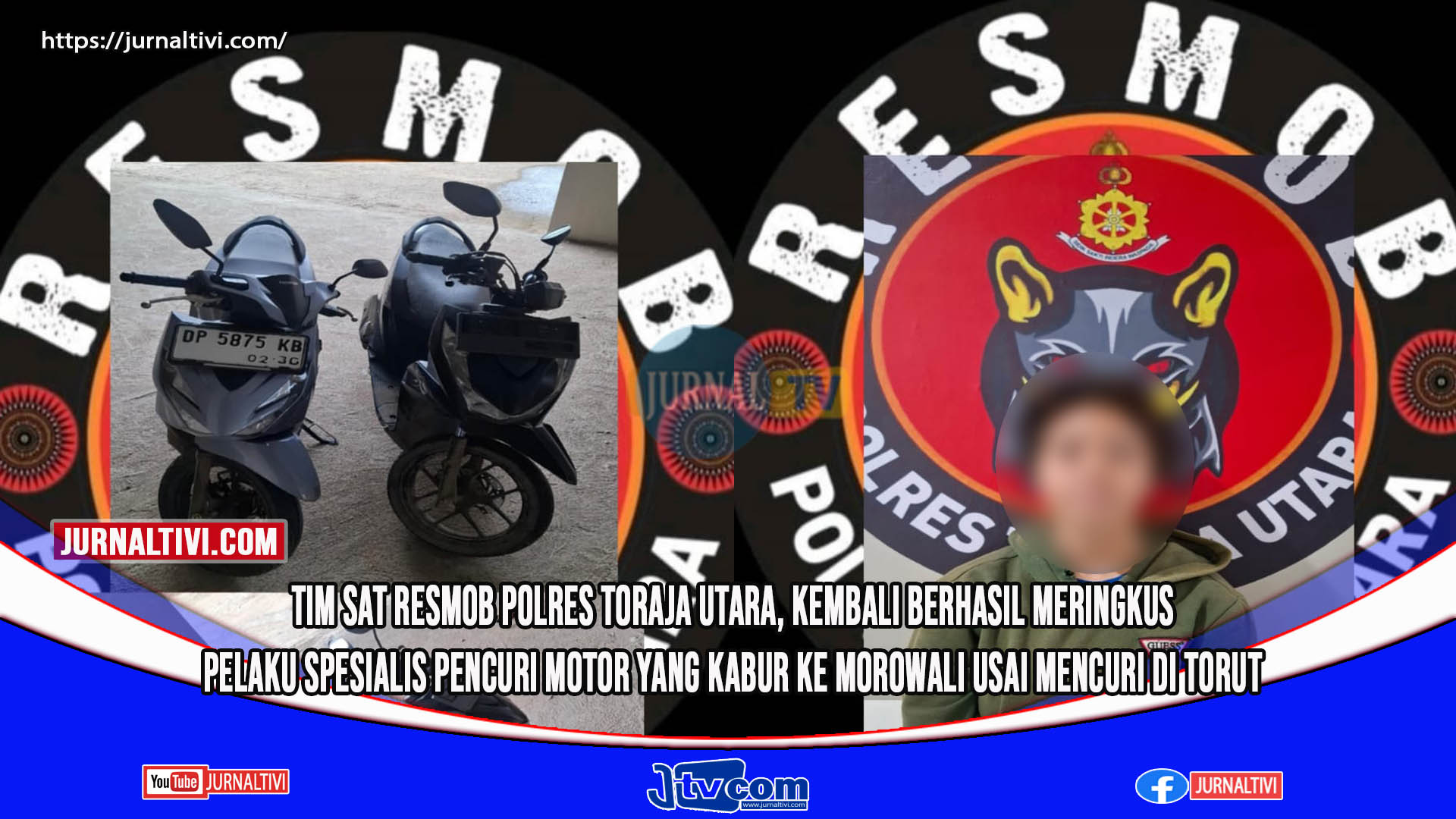 Toraja Utara, Jurnaltivi.com – Tim Sat Resmob Polres Toraja Utara, Provinsi Sulawesi Selatan, Rabu 8 Maret 2026, Kembali berhasil meringkus pelaku pencurian motor, yang siusai melaksanakan aksinya kabur bersama barang bukti, kewilayah Kabupaten Morowali, Provinsi Sulawesi Tengah.
