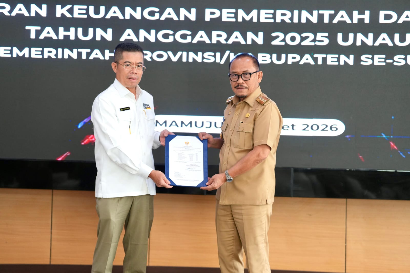 Penyerahan dilakukan di Auditorium BPK Perwakilan Provinsi Sulbar, Jalan H. Abdul Malik Pattana Endeng, Kecamatan Simboro, Kabupaten Mamuju, Sulbar pada, Selasa 31 Maret 2026.