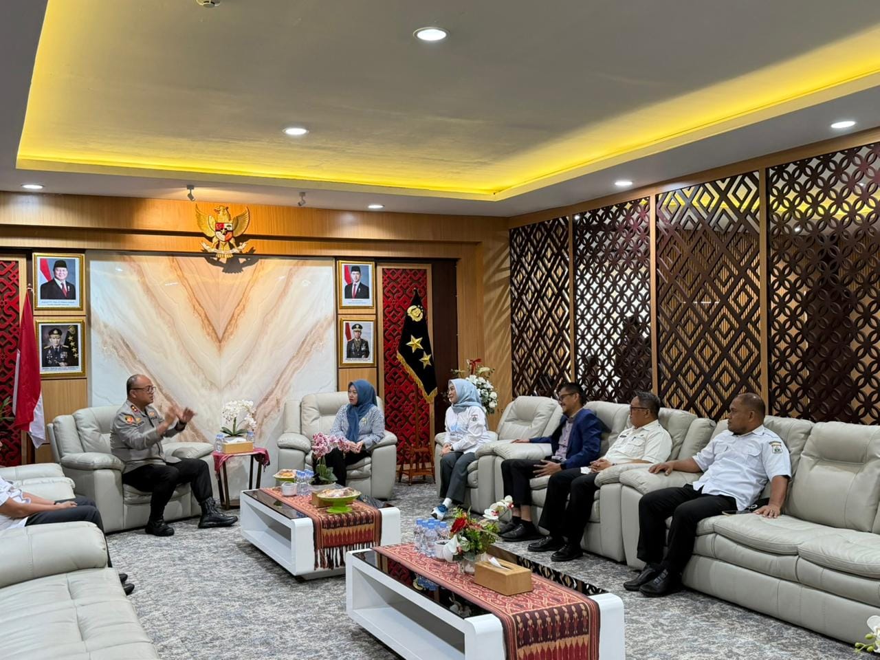 Rombongan DPRD Sulbar disambut langsung oleh Kapolda Sulbar, Irjen Pol. Adi Deriyan Jayamarta, beserta jajaran di Kantor Polda Sulbar. Pertemuan berlangsung hangat dan penuh keakraban, mencerminkan komitmen bersama dalam memperkuat hubungan kelembagaan.