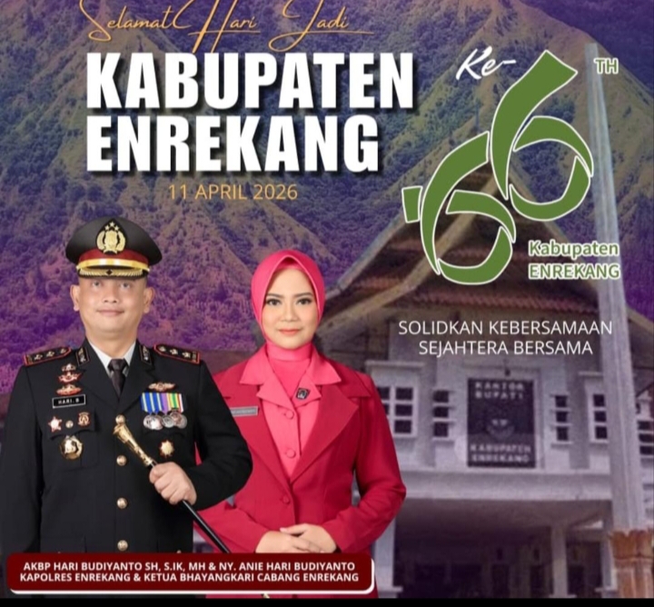 Atas nama pribadi, keluarga besar Polres Enrekang, serta Bhayangkari, kami mengucapkan selamat Hari Jadi ke-66 Kabupaten Enrekang. Semoga Bumi Massenrempulu semakin maju, masyarakatnya semakin sejahtera, dan pembangunan terus berjalan dengan baik,” ujar Kapolres, dirangkum awak media melalui Sihumas polres Enrekang