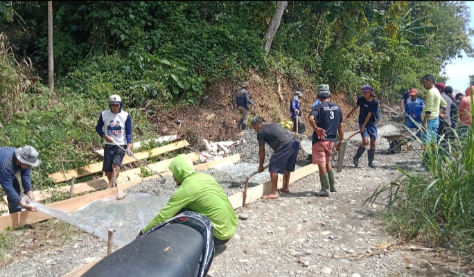 Lokasinya juga berjarak sekitar dua kilometer dari pusat ibu kota kabupaten. Meski hanya dihuni puluhan kepala keluarga, mereka sepakat mengerjakan jalan sepanjang lebih dari satu kilometer demi menunjang aktivitas sehari-hari.
